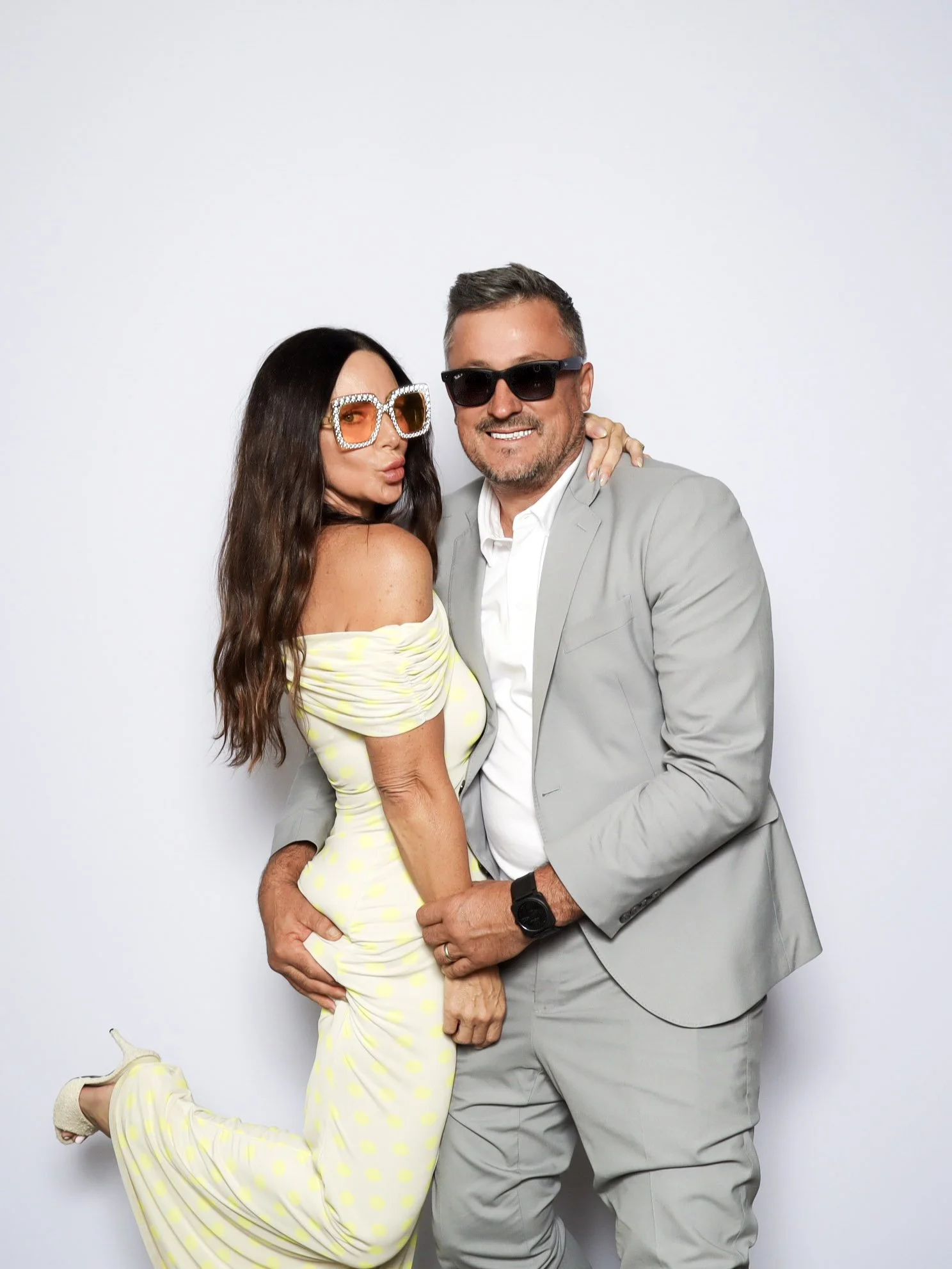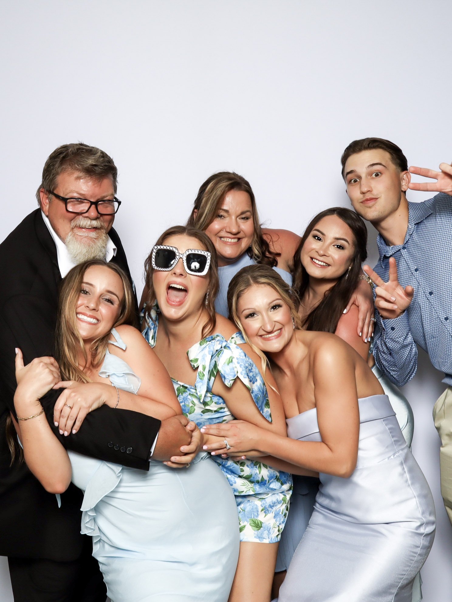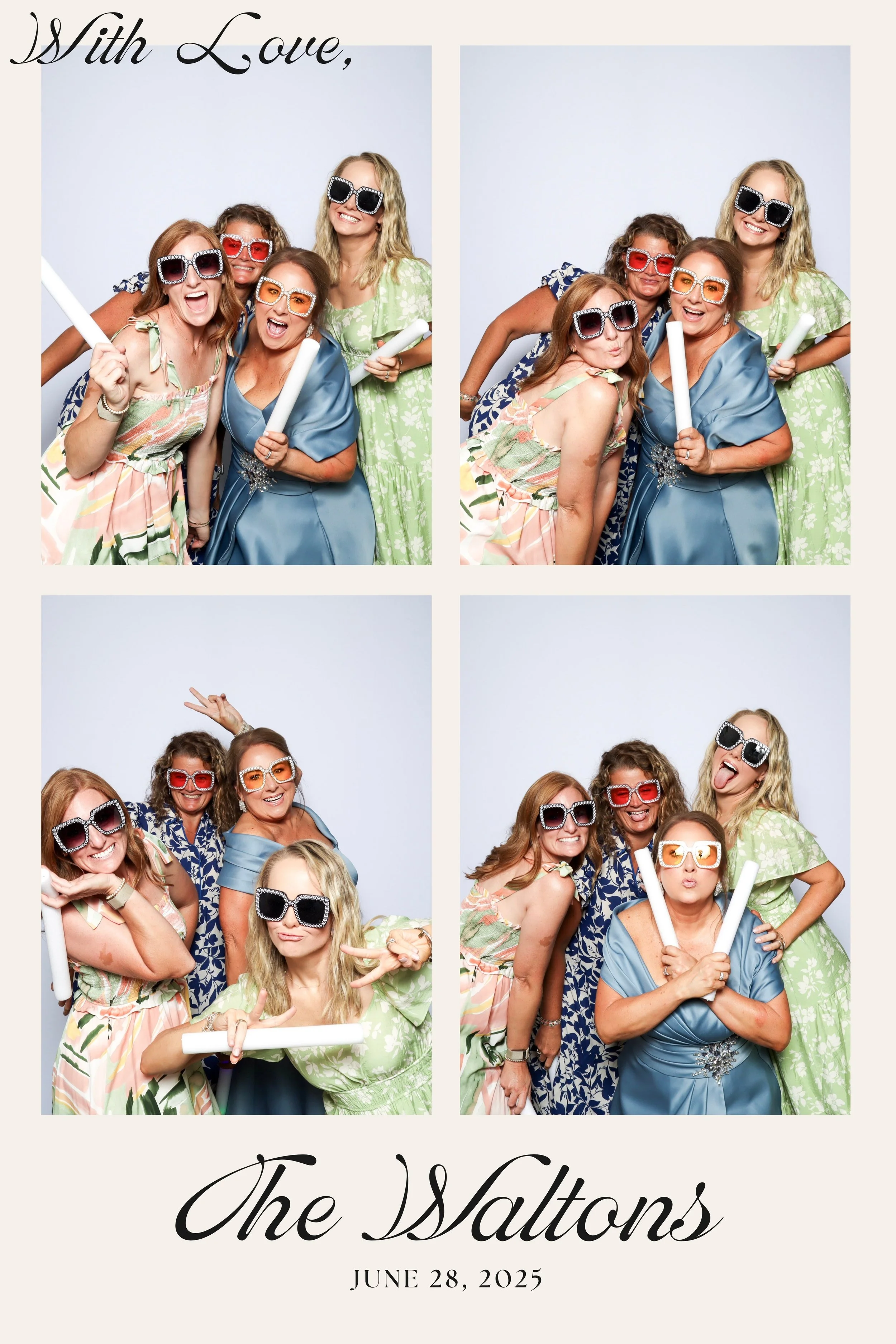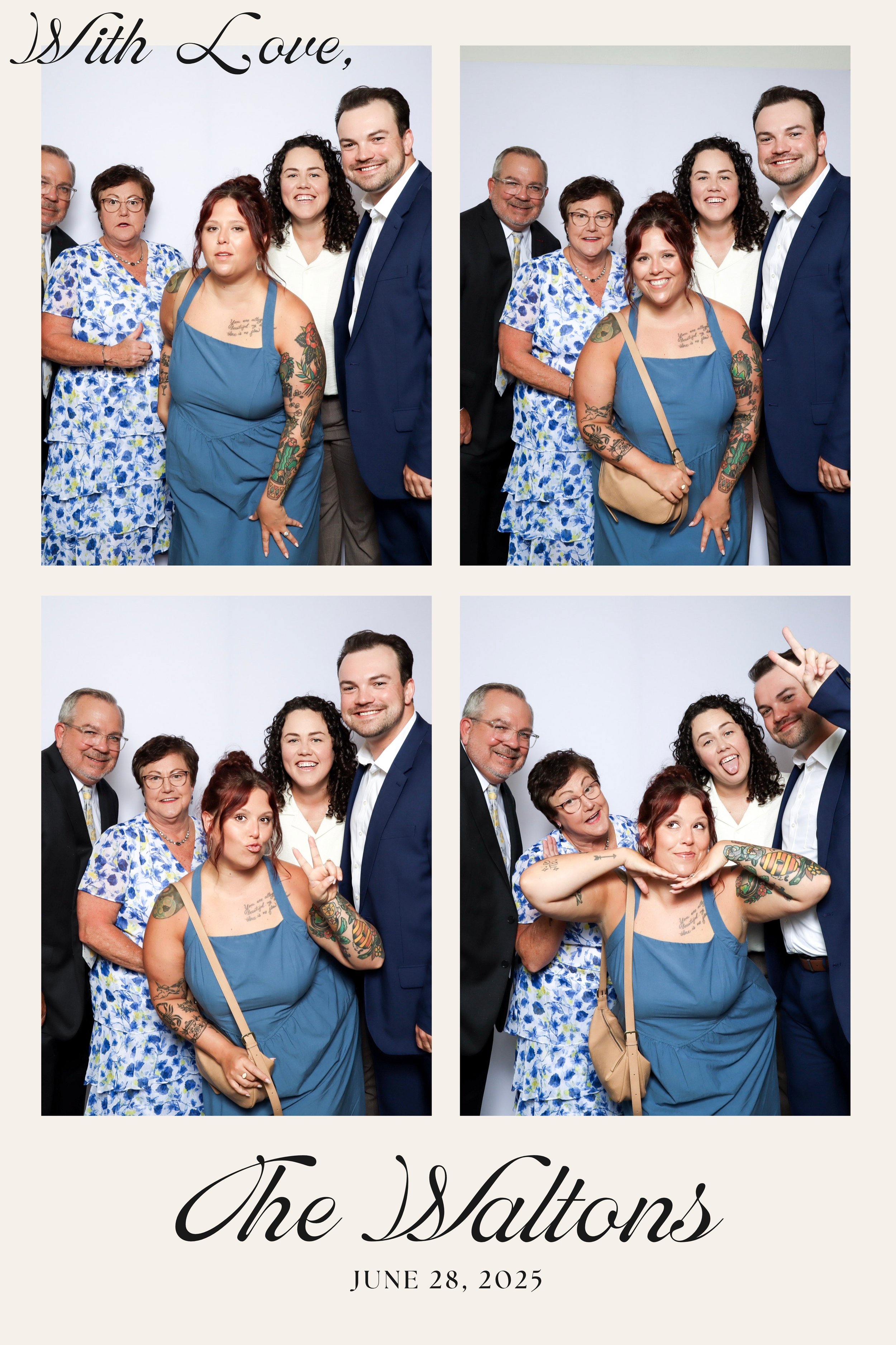 Our PRO photo booth was set up with a clean white backdrop, a custom photo template designed for their wedding, and a colored GLAM filter that delivered bright, high quality images throughout the reception. From fun group photos to classic couple shots, the booth stayed busy and gave guests a memorable takeaway from the night.