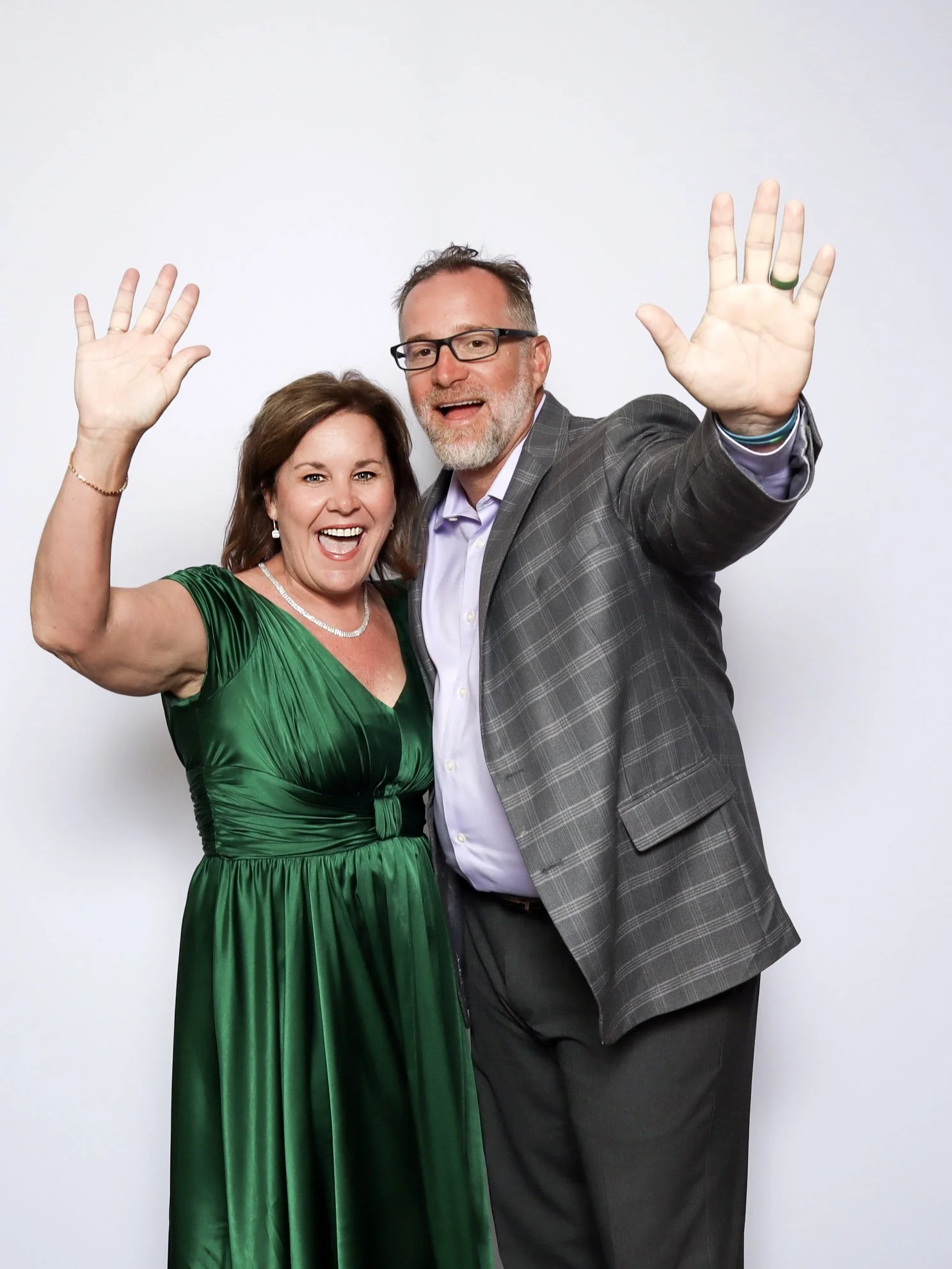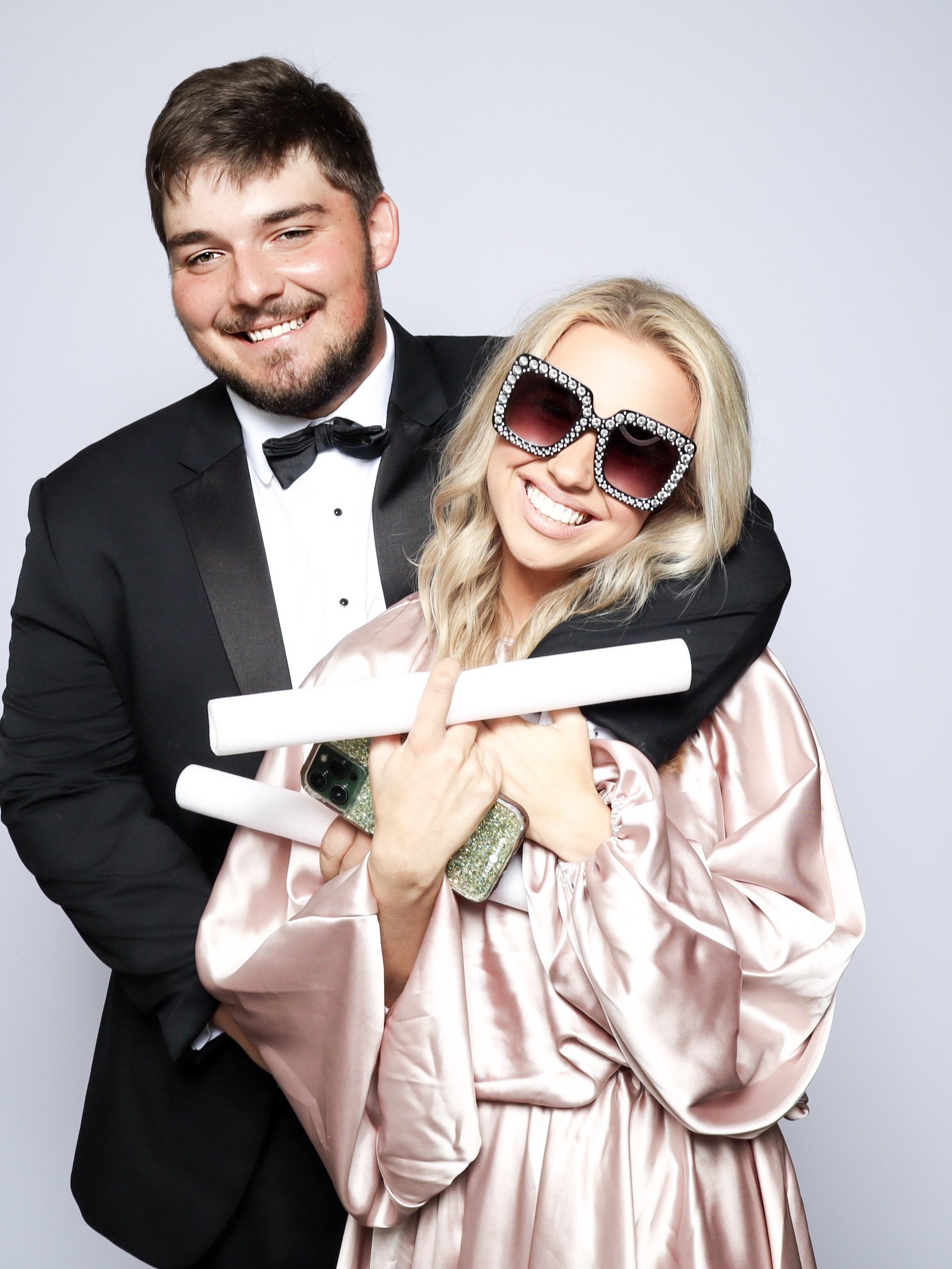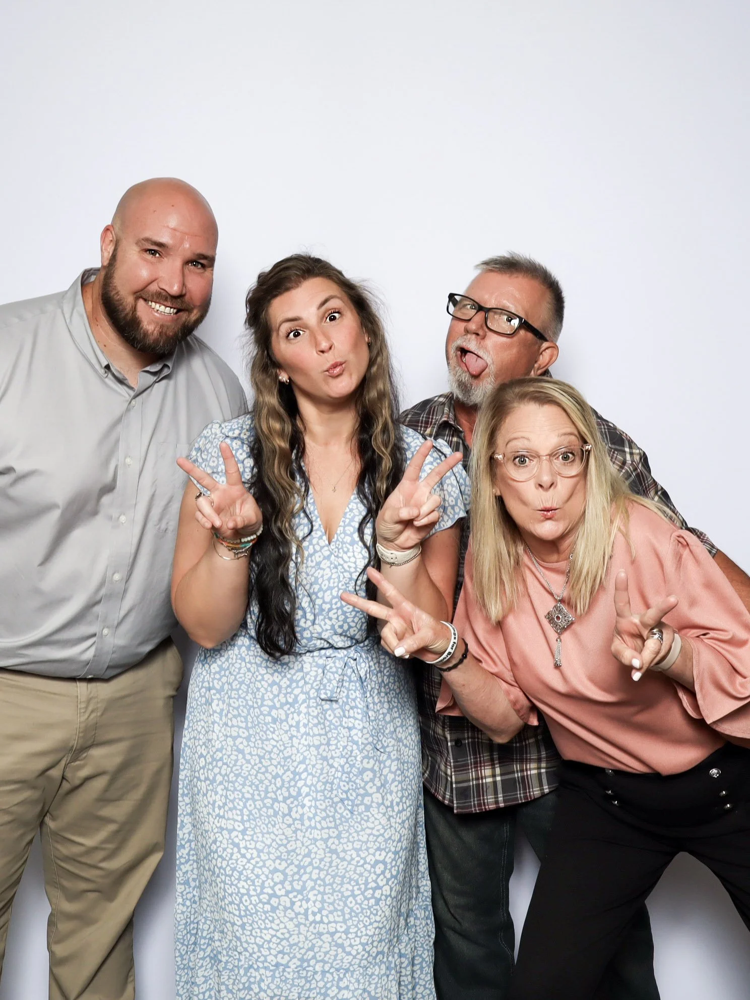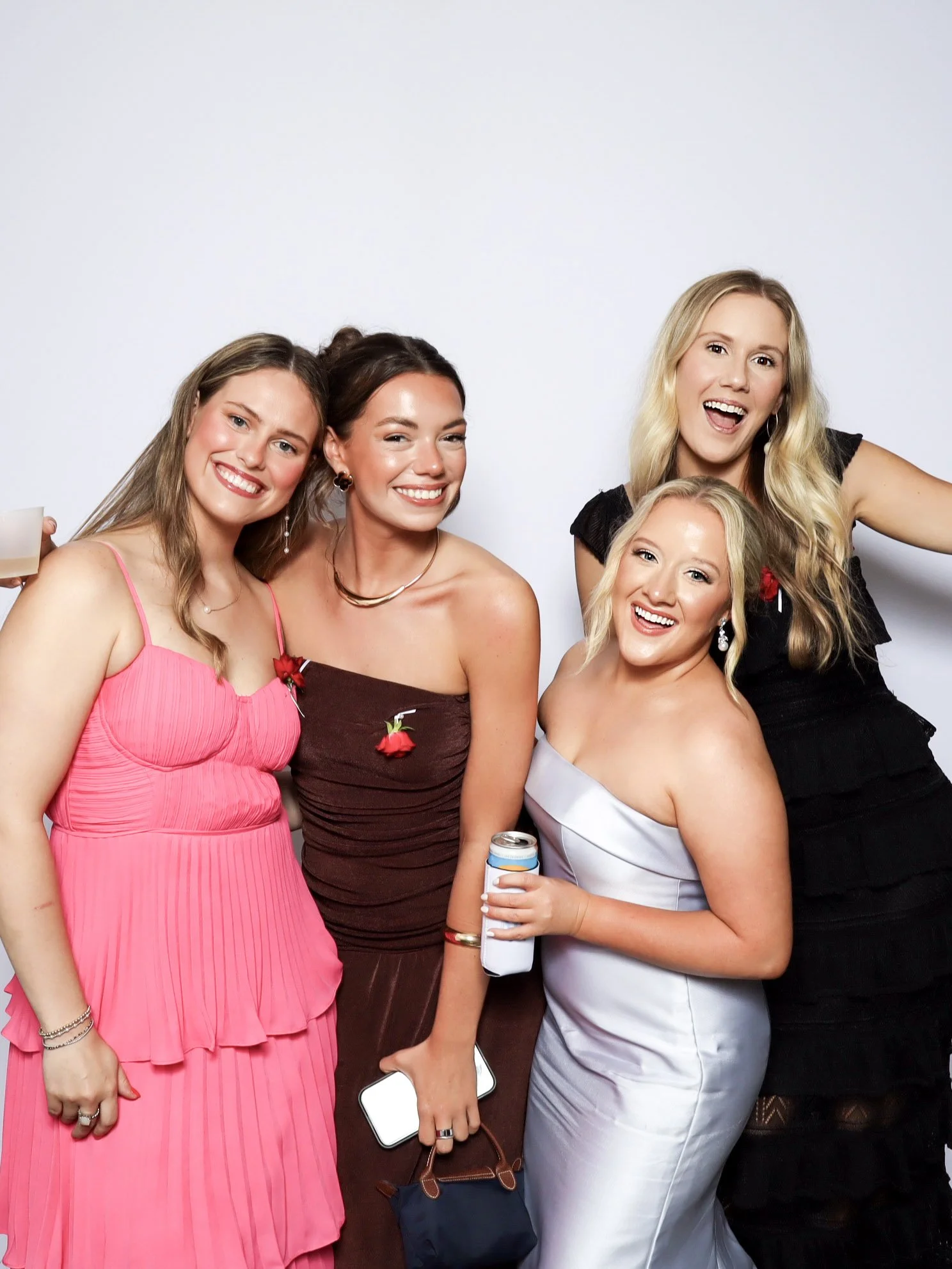 Our PRO photo booth was set up with a clean white backdrop, a custom photo template designed for their wedding, and a colored GLAM filter that delivered bright, high quality images throughout the reception. From fun group photos to classic couple shots, the booth stayed busy and gave guests a memorable takeaway from the night.